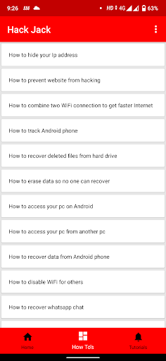 On Hack Jack, you will be able to start with the basics of cybersecurity and ethical hacking so that you can build your skills around it. You can build your ethical hacking skills on the go from Ethical Hacking Tutorials on this app.
