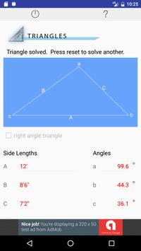 - solve acute, right angle, and obtuse triangles for angles, distances, or areas.