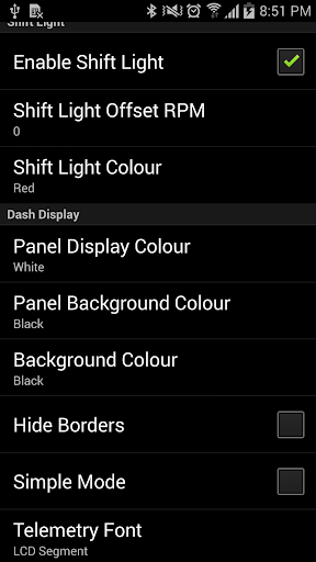 The application also features a Shift Light. Users can set the shift light colour and enter a shift light offset value if required.
