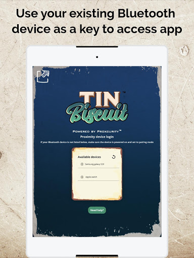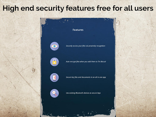 Keep all your precious photos, videos, passwords and documents encrypted and safe from prying eyes with our Tin Biscuit app. Gain access to all your files by turning any Bluetooth device of your choice into a unique authentication key for enhanced security with our patented Proxcurity technology.