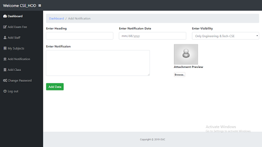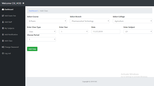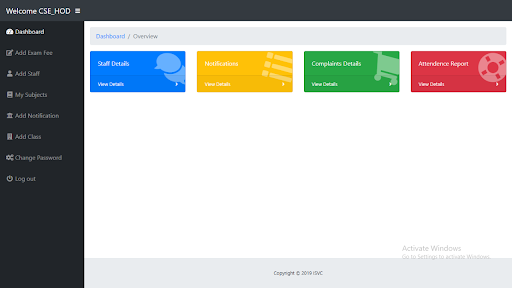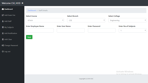 Sri venkateswara colleges providing login for staff to maintain attendance and student reports in mobile application and staff can add the class room or session or lab this application is for HOD or Incharge. HOD can create staff and add update delete staff members.
