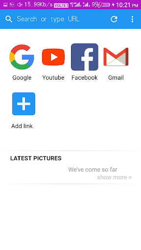 It's a just a browsing app. You can surf the internet to easily and we are also working on hard to get you best browsing app... So we hope that you can support us.. Kindly we are apologize for that the app is not much expected. But we promise that in few months we are providing you best services. Thanks a lots..