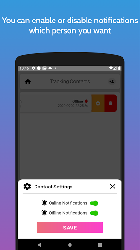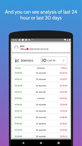 You can turn on and off notify the notifications that instantly inform you of the activity, online and offline person you follow (or your own number). In addition, even if you track more than one phone num at the same time, it notify to you the status of all of them within the names you give.