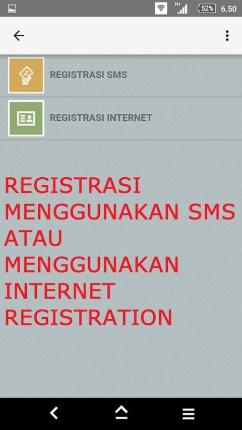 Registration using this application is very easy because there are 2 options for registration, namely via SMS and can also register using the internet registration.