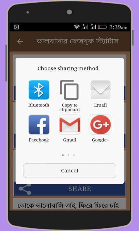 ফেসবুক এখন আমাদের কাছে বিনোদনের অনেক বড় একটা জায়গা হয়ে উঠেছে। অনেকেই এখন দিনের অনেকটা সময় ফেসবুক এ ব্যয় করে থাকে। আবার অনেকেই হয়তো ফেসবুকে স্ট্যাটাস দিতেও পছন্দ করেন। কিন্তু ঠিক ভাবে গুছিয়ে লিখতে না পারায় অনেকেই হয়তো status দিতে পারে না বা বিলম্ব বোধ করে । ফেসবুকে মানুষ তার মনের বিভিন্ন দুঃখ বেদনা কষ্টের কথা সেয়ার করে। প্রেমের ছন্দ,ভালোবাসার কথা, মেয়ে পটানোর উপায়, love sms,love massage,ভালোবাসার মেসেজ,প্রেমের উক্তি,ভালোবাসার উক্তি, বাংলা মেসেজ, প্রমের চিঠি,প্রেমের কবিতা, । নিজে কোনো দিন স্ট্যাটাস দেন না।বা কি লিখবেন তা খুজে পান না।তাদের জন্য আমার এ এ্যাপ্স।