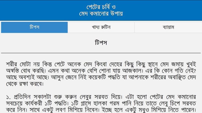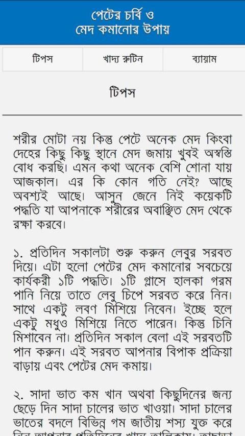 This article is about hot apps for android. 20,000+ users downloaded পেটের চর্বি ও মেদ কমানোর উপায় latest version on 9Apps for free every week! It is a wonderful app that amazes every player. This hot app was released on 2018-03-06. And it takes your phone small room to run it.