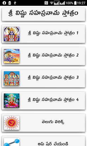 This devotional app contains 4 variants of Sri Vishnu Sahasranama Stotram audio and Vishnu Sahasranamam lyrics in Telugu language.