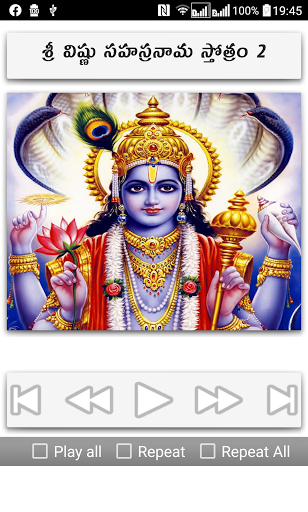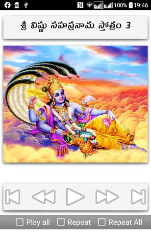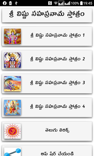 This devotional app contains 4 variants of Vishnu Sahasranama Stotram audio and Vishnu Sahasranamam lyrics in Telugu language.