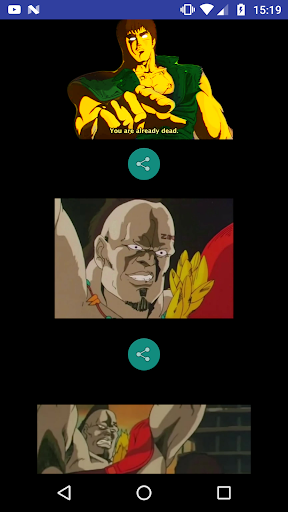 Conocida frase de "Hokuto no Ken" o "Fist of the North Star", viene en 3 formatos: - Omae wa mou shindeiru - Nani?! - Omae wa mou shindeiru. Nani?! Ademas de un botón para compartir el audio por Whatsapp.
