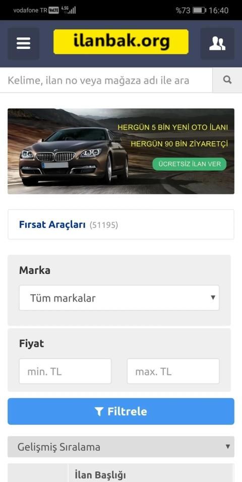ilanbak.org ile hergün 5 bin yeni oto ilanını inceleyebilir veya aracınızı ücretsiz ilan vererek hemen satabilirsiniz.