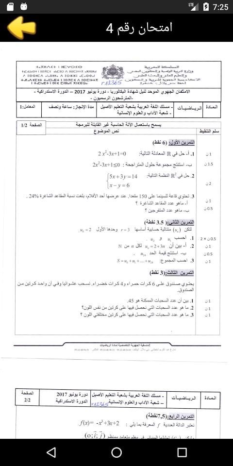 امتحانات جهوية في الرياضيات للسنة الأولى باكالوريا آداب