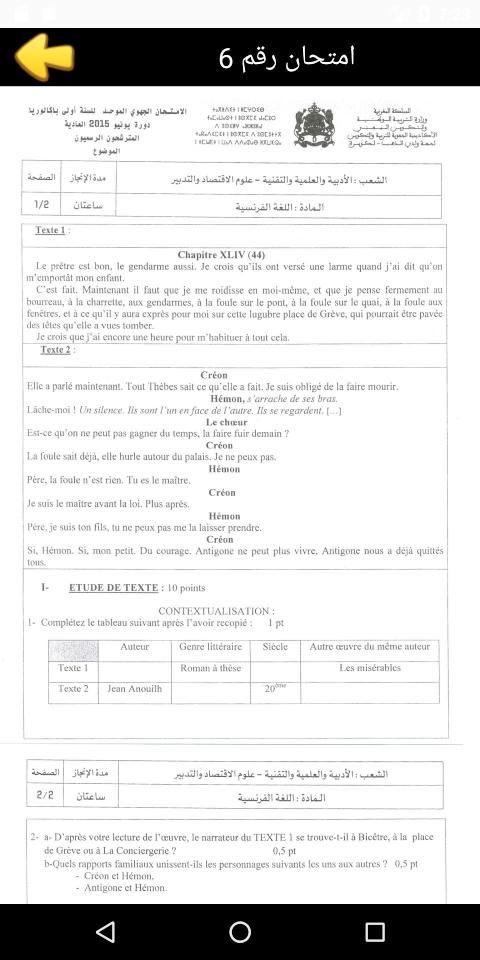 الإمتحانات الجهوية أولى بكالوريا آداب وعلوم انسانية مادة اللغة الفرنسية