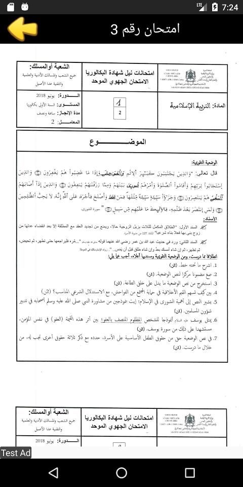 الإمتحانات الجهوية أولى بكالوريا آداب وعلوم انسانية مادة التربية الإسلامية
