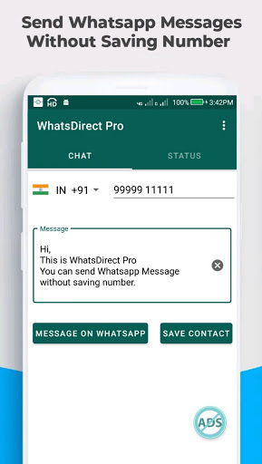 WhatsDirect Pro - (Direct Chat & Status Downloader) is a app to WhatsApp directly without saving unknown numbers. Direct message supports mobile number entering as well as copy paste from call logs facility to enter mobile number.