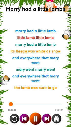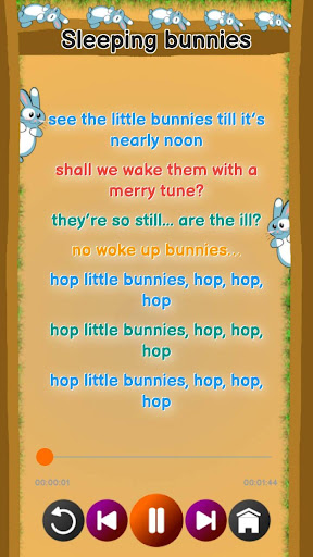 4. Repeat the button to play in repeat mode of your favorites rhymes.