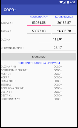 Ukoliko izaberete opciju da sracunate mogucnost koordinata tacke na upravnoj neophodno je poznavati koordinate krajnjih tacaka linije i unosom duzine i duzine upravne dobijate koordinate tacke na upravnoj.