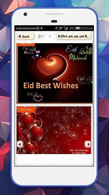 Eid card romantic, Eid SMS card, and Eid Mubarak messages are arranged with the app. Eid card can send SMS images to your loved ones on Eid day? Eid should bring joy to everyone's life. The most important aspect is Eid greetings exchange Eid greetings to everyone on Eid day via SMS. You can easily communicate your love with Eid SMS card image. All the Muslims of the world love Eid cards too. The app was built with Eid's best SMS card image. Press the share button as a gift of the loved ones and send them beautiful sms card images.