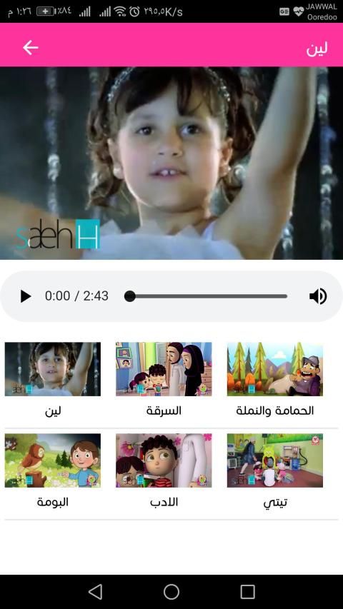 *القطة الخاروف العصفور ,رتب أوقاتك,ايدي ايدي شو فيها ,,زعلانه ليش هالأمورة ومعجوقه إحزرو ايش حصالتها مسروقة *خليك بأدبك على طول واجب دائما الإستئذان,وجع الاسنان,حرف الخاء,هيا بنا نتعلم الأشكال ,في البستان ,لبن أنا اللبن مفيد وصحي جدا