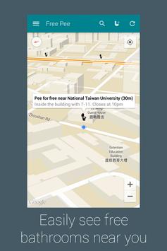Free Pee is an app that can show free toilets near you. This is especially useful in places like Europe where "pay toilets" are common.