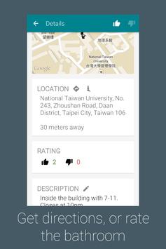 - everyone can help each other out by adding free bathrooms to the map and rating bathrooms