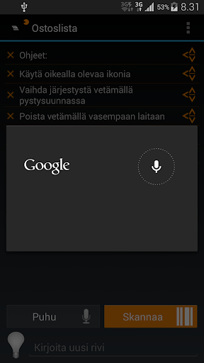 to quickly add new items in the shopping list. You can switch the speech recognition language to whichever suits you best. Google's speech recognition works really astonishingly well also for entering amounts, for example, "5 oranges" or "400 grams of ground beef".