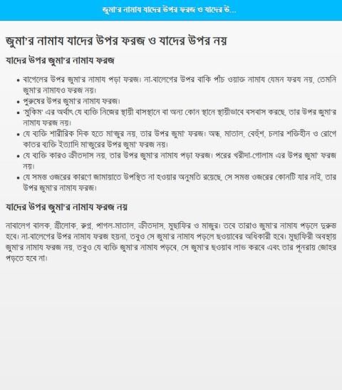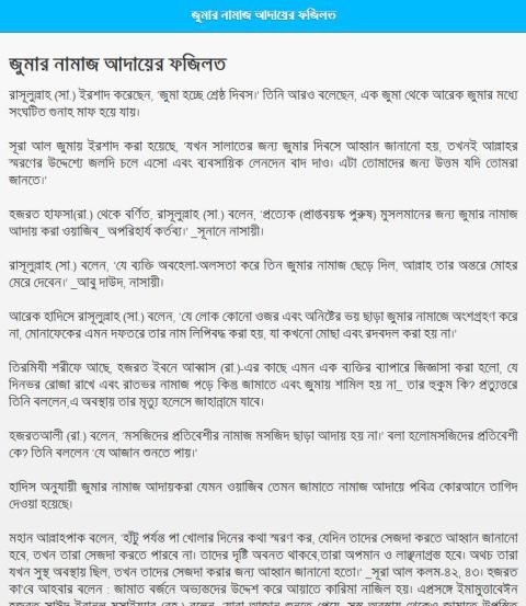 এই অ্যাপ থেকে Jumah - জুমার নামাজ, জুমার নামাজের নিয়ত, জুমার নামাজের দোয়া, কাবলাল জুমাহ, বাদাল জুমাহ ইত্যাদি সম্পর্কে জানা যাবে।