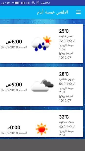 - توقعات الطقس كل 3 ساعات.
