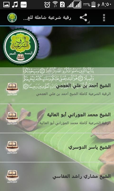 For the treatment of the eye and the touch and the magic and envy without Internet audio mp3 is a free application that combines the most beautiful voices in the Senate readers roquia where the application includes the voices of readers: