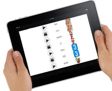 Through voice reading words and sentences prescribed curriculum scheduled school book, photos, and translation into Arabic