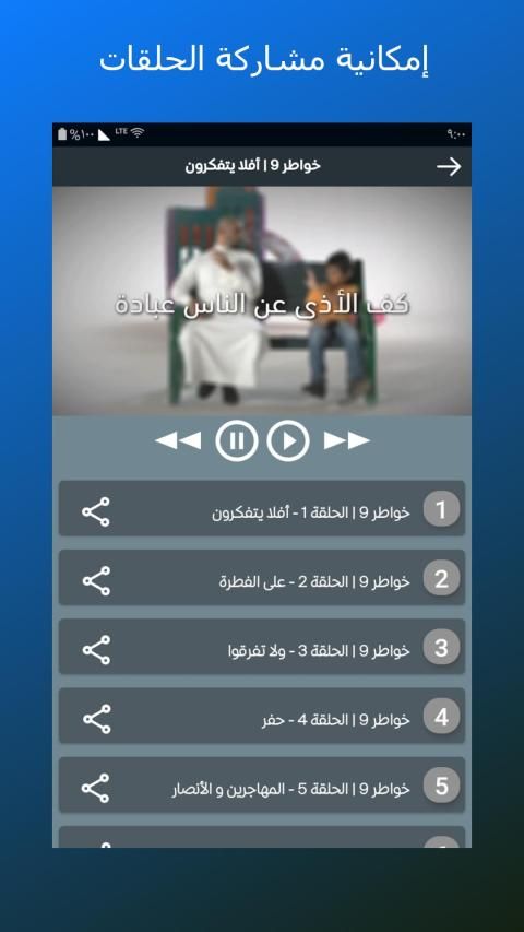 2- امكانية مشاركة الحلقات عبر مختلف وسائل التواصل الإجتماعي.