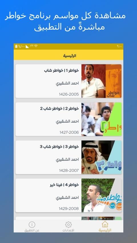 هذا التطبيق يتيح لك مشاهدة جميع حلقات مواسم خواطر عبر الإنترنت من القناة الرسمية للأستاذ أحمد الشقيري على يوتيوب بشكل أسرع و أفضل من المتصفِّح العادي وبكل سهولة كما يتيح لك مشاركة هذه الحلقات مع أصدقائك عبر الواتس اب و البريد الإلكتروني ومواقع التواصل المختلفة.