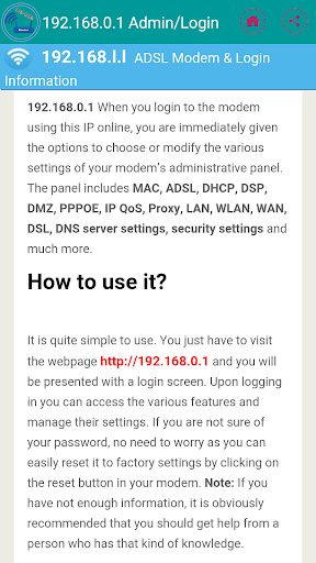 192.168.0.1 When you login to the modem using this IP online, you are immediately given the options to choose or modify the various settings of your modem’s administrative panel. The panel includes MAC, ADSL, DHCP, DSP, DMZ, PPPOE, IP QoS, Proxy, LAN, WLAN, WAN, DSL, DNS server settings, security settings and much more.