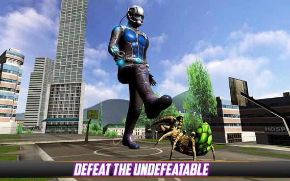 put up a city street war smashing & striking alien robot gangster and creepy spider. These other world gangster attack cities to destroy, ruin and occupy this world, superhero ant man which have unique and strange superpower e.g. transform small, big and throw thunder and flying save the city from thug gangster mafia which is super dangerous and supernatural powerful destroying the big city. As amazing mutant ant hero can transform into tiny like ant, set for the battle zone in the clash of alien monsters. Play the micro transform superhero city war simulation To kill off mafia goons, perform fighting tricks & dangerous stunts. Also strive hard to escape furious and fast cars for survival in this full action-packed superhero fight game with many exciting missions.