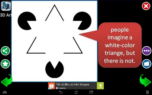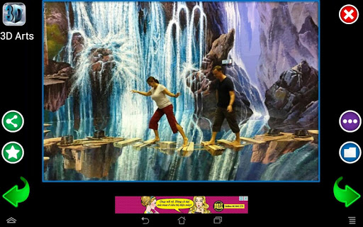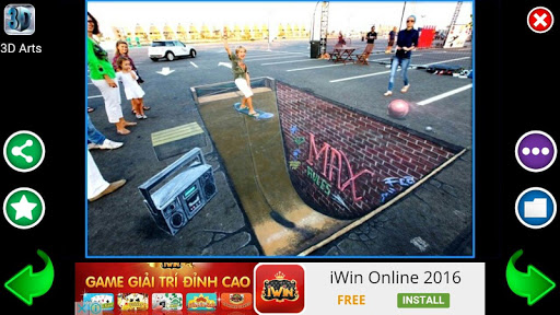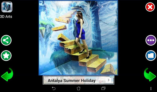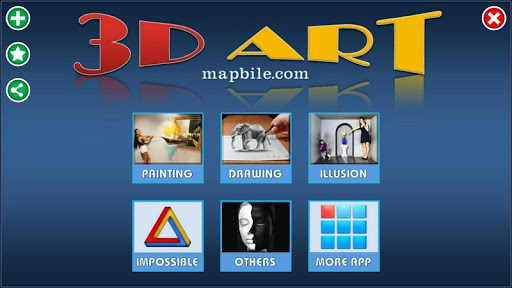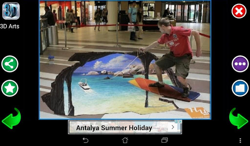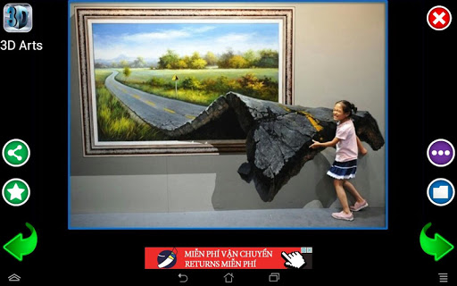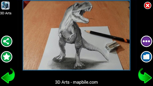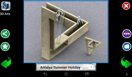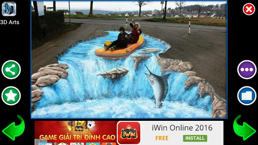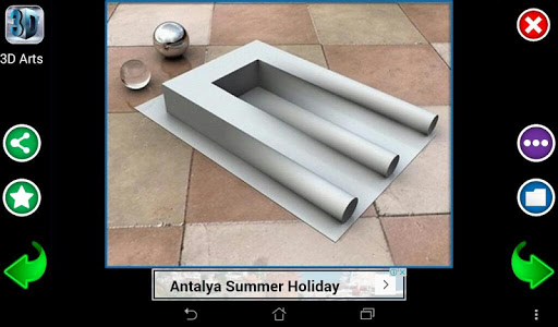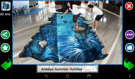 Amazing three dimension art pictures: - 3D paintings. - 3D drawings. - 3D optical illusion images. - 3D impossible objects. - and more ...