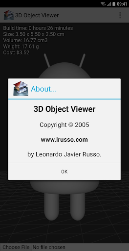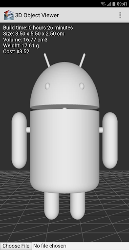 3D Object Viewer in STL, OBJ and 3DS format with weight, size, volume, cost and printing time functions.