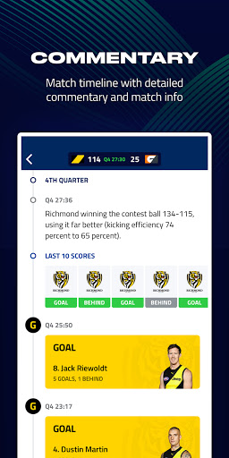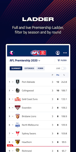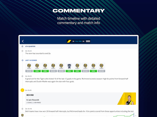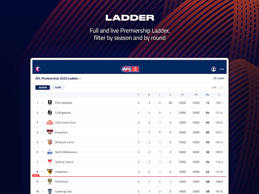 • View comprehensive stats for every match, plus live scores and the live ladder