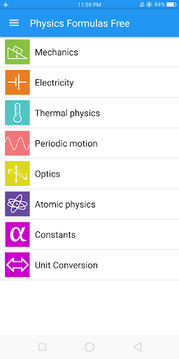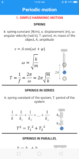 Physics Formulas Free is a free and offline version app .You can find here all kinds of physics laws and formulas like:
