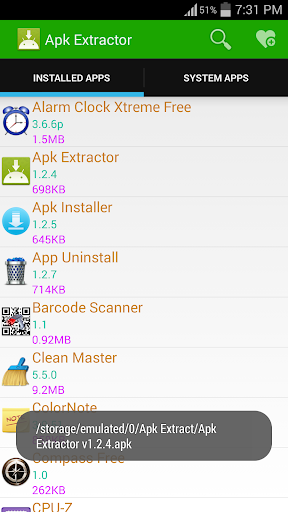 Apk Extractor will extract any APK file from your device. Save it to your SD Card. Share to friends. The file has been saved in "/Apk Extract/" folder. It helps backup all apk files. Share file via bluetooth,email, etc....
