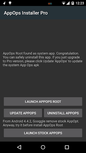 Otherwise, this app have a button to start stock App Ops on older Android version (4.3, 4.4)