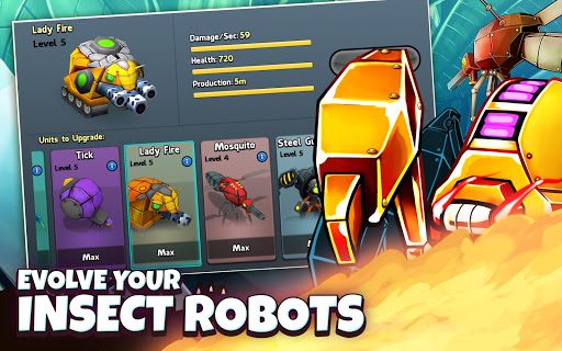 Control insect robot Armies whose abilities combined with the Heroes Skills provides new strategies and battle experiences.