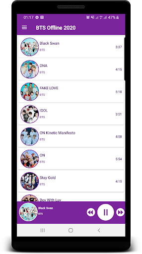 BTS song's application comes with all songs and this application can run OFFLINE (without internet), is displayed interactively with clear images that make it easier for users, presented for FREE and can be saved in External Memory.