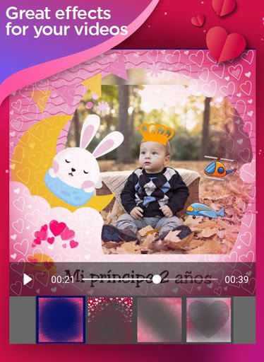 From belly to the first steps with baby video maker ! Make every moment special with bright stickers, magic filters, awesome fonts, cute doodles, text labels, overlays, artworks and more. Get creative, add the cutest stuff or decorate with just a little something extra!