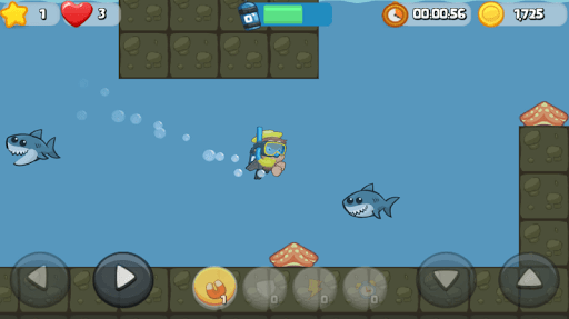 Enter an action-packed adventure, filled with dangerous obstacles and enemies. From birds and bats in the air, caterpillars and snails on land, to underwater killer sharks, and much more. This is an adventure time that will impress everyone.