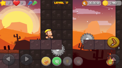 A baby monkey was born destined to become a jungle king. But before that, a jungle elder wanted to see his wisdom. This little monkey king will go through the lost city to collect the gold. It is a 'magic kingdom' heritage that brings glory to all dwellers of the jungle. Even though this magical star is hard to find, this adventure island is full of bananas 🍌. Monkey Kong loves bananas very much, because bananas are very soft and sweet.
