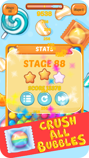 Crush the all candy bubbles. Collect three golden stars and unlock new levels. Every months we make updates and add new options with new levels.