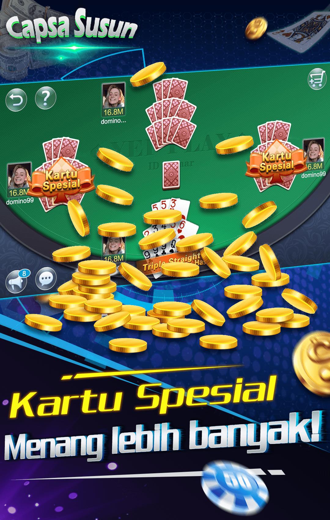 a. Tidak hanya capsa susun, kalau mau main DominoQQ, Gaple, Remi apalagi Slot semua nya ada di aplikasi ini!