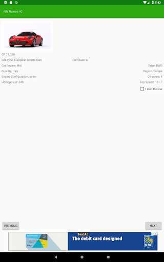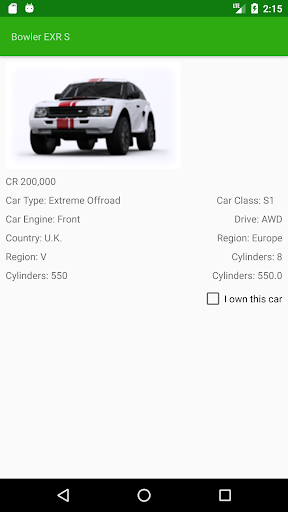 Car Tracker supports importing and exporting of owned car lists to allow for multiple Forza accounts or to transfer your data between Android devices.