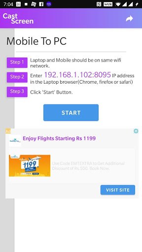 Cast mobile to PC or MAC computers - Other than screen sharing your mobile phone to TV, you can mirror the mobile device to any PC or MAC system also. Bored of watching your videos on your mobile device? or are your neck and eyes getting strained out? No worries, just mirror your mobile on your PC display using this Cast to TV /PC app, keep your mobile aside, relax and watch it on the PC/MAC display.This unique broadcasting feature makes this app special from other apps.
