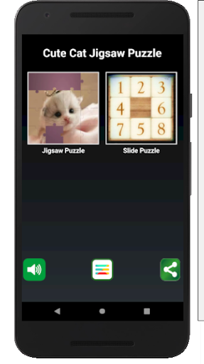 Cute Cats Puzzle is a free Android puzzle game that contains three type of puzzles ( Jigsaw puzzles, Slid puzzle and 2048 cards puzzle).