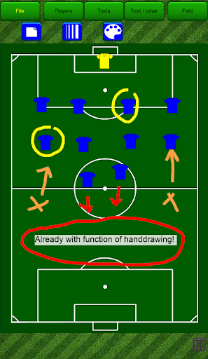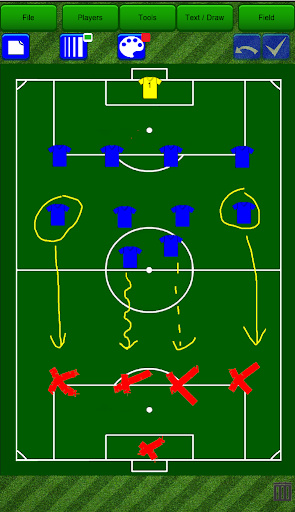 If a tactical board is not there you can use this app as a digital tactical board to draw up a team or explain a certain in-game situation for the players. Use your fingers to draw, what you can delete with one click.